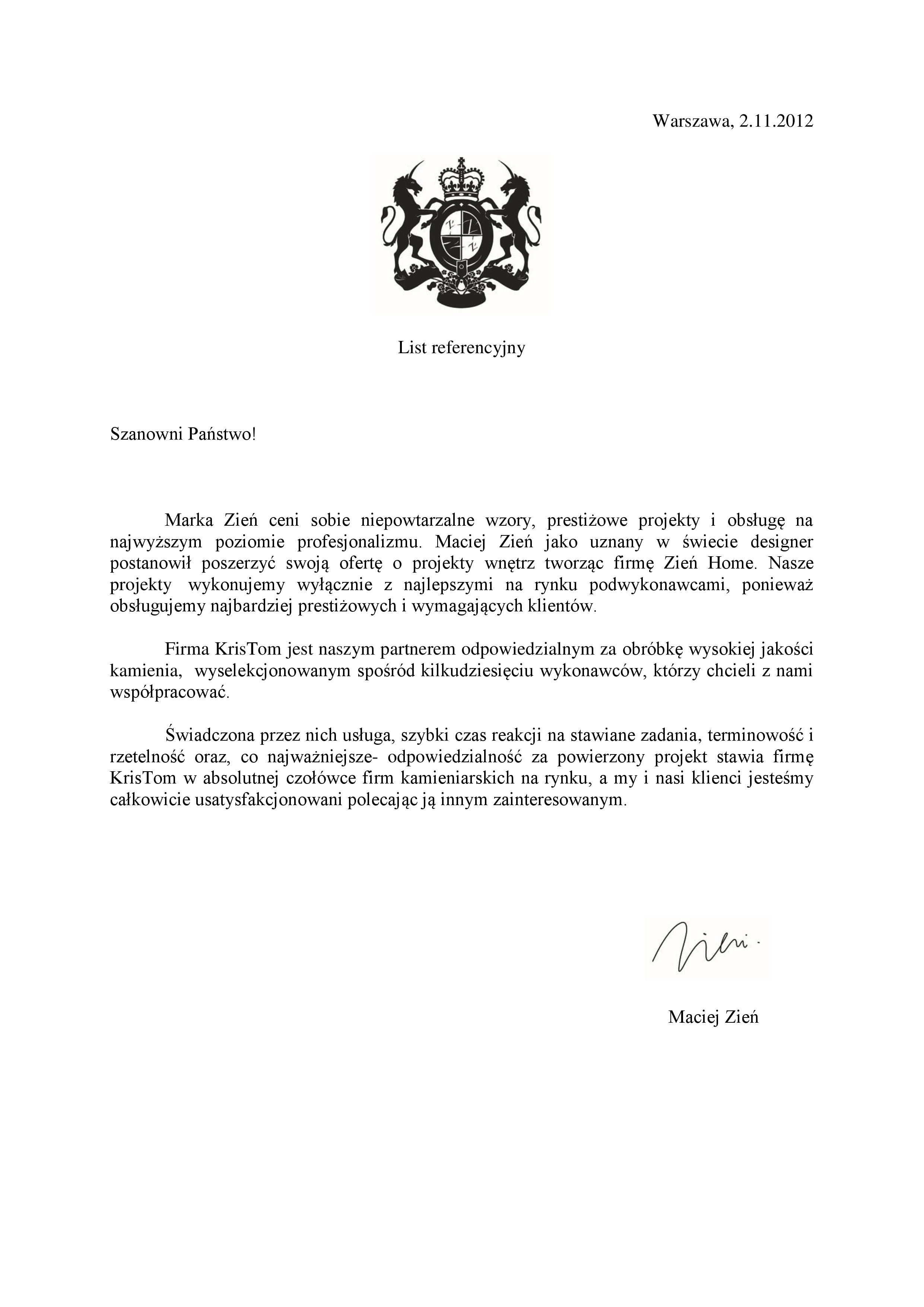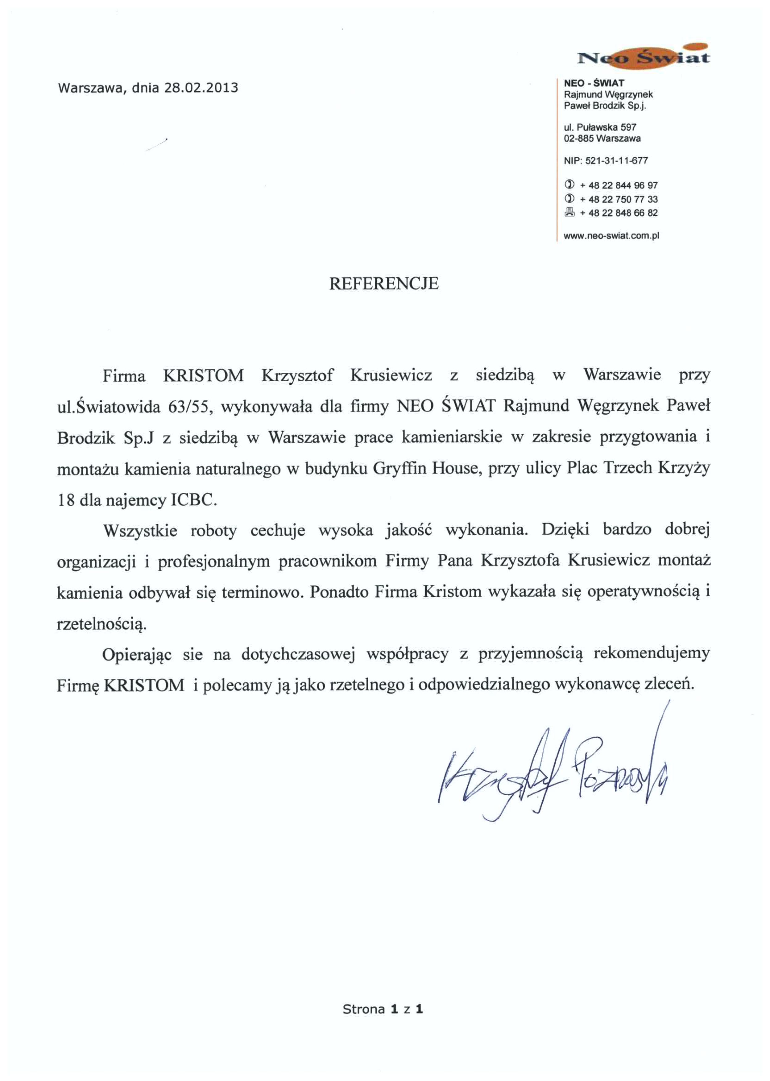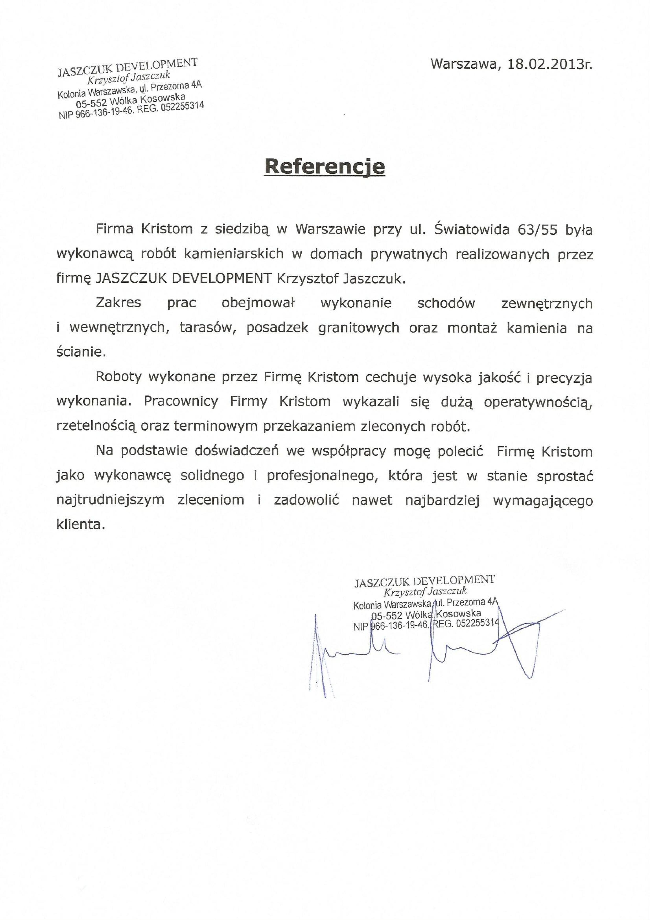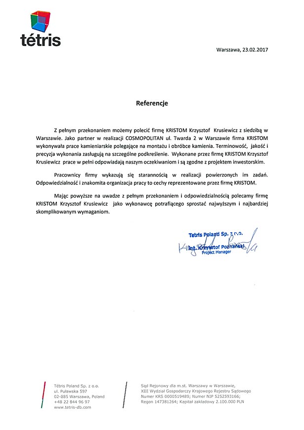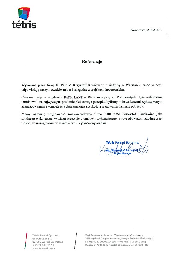 Współpracujemy na stałe z kilkoma firmami, ich rekomendacje znajdziecie Państwo na naszej stronie.